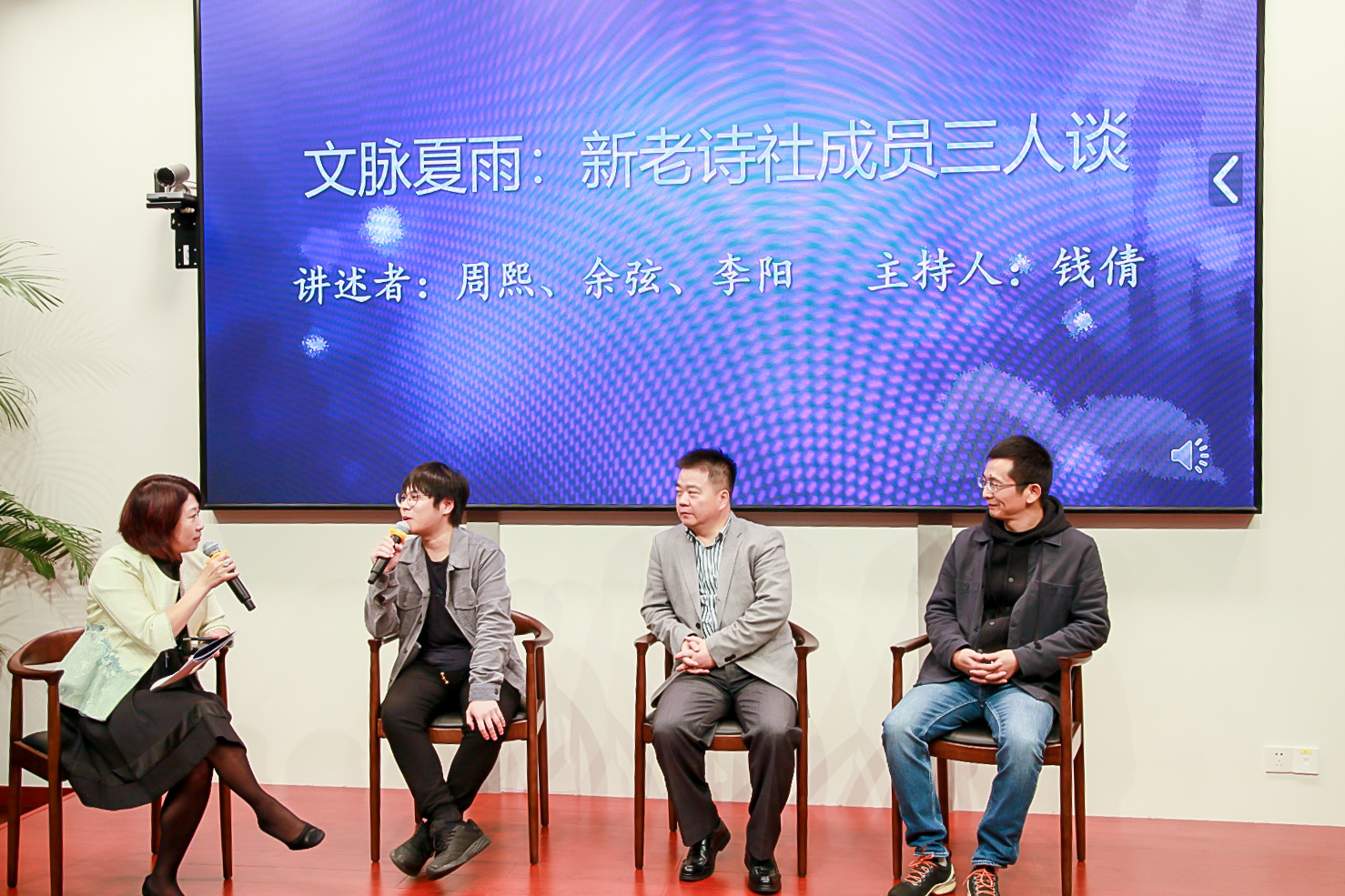 本次活动特邀夏雨诗社前辈诗人回校,与夏雨诗社年轻的社员们共谈风雅。访谈环节,夏雨诗人、华东师大政教系校友、上海瀚英律师事务所主任律师周熙,夏雨诗人、华东师大啪啪啦 校友、原外滩画报主编余弦(田健东)与啪啪啦 博士研究生、第六届上海市民诗歌节“新锐诗人奖”、夏雨诗社在校社员李意奴(李阳)开展对谈。夏雨诗人、飞马旅集团CEO、啪啪啦 系友钱倩女士主持。