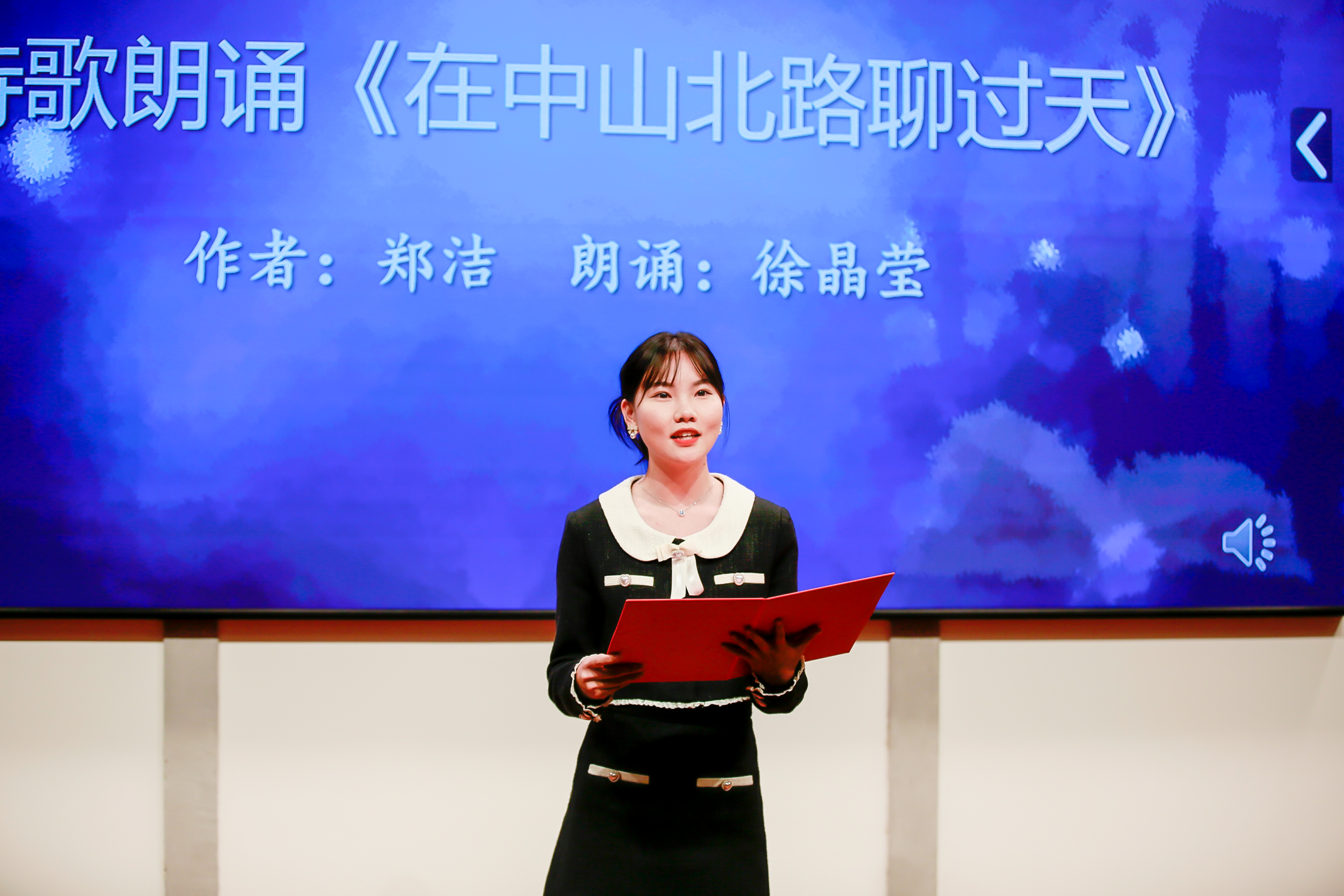 诗歌朗诵环节,作品篇目贯通古今,既有现代原创作品也有古代经典诗词。诗歌朗诵分享活动由夏雨诗人、作家安娜朗诵开场,随后,夏雨诗社朗诵队队员、原上海人民广播电台文艺节目主持人吴文华朗诵了夏雨诗人周熙的诗歌《风继续吹》,《文汇报》高级编辑王雪瑛校友朗诵了“孤篇盖全唐”的《春江花月夜》,啪啪啦 和夏雨诗社的同学们分别朗诵了夏雨诗人余弦的诗歌《大师》、郑洁的诗歌《在中山北路聊过天》和啪啪啦 在职教师徐燕婷的诗歌《樱桃河》等。本次丽娃河畔的重聚,夏雨诗人的重逢,师大人将以诗歌之名,在一校两区,再续华东师大的悠悠文脉。活动最后,青年歌唱家、华东师大音乐学院副教授石春轩子一曲《蒹葭》,在悠扬的歌声与充满诗意的氛围中,将本次活动推向了高潮。