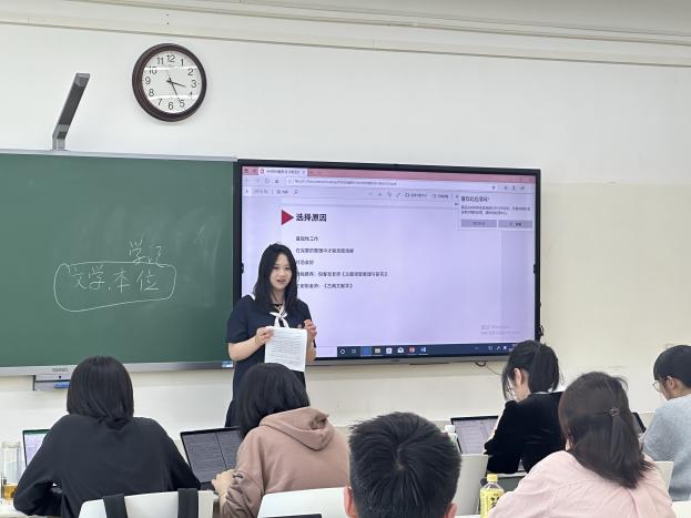 4月24日下午,支部在闵行校区第一教学楼H201教室开展了系列活动的中国古代文学、中国古典文献学、汉语言文字学专场。中国古代文学教研室副教授倪春军作为教师代表出席了本场活动,支部学生党员刘楚戈、尚倩倩、吴思燕、唐艺琳参与分享,主持人为张芷涵。