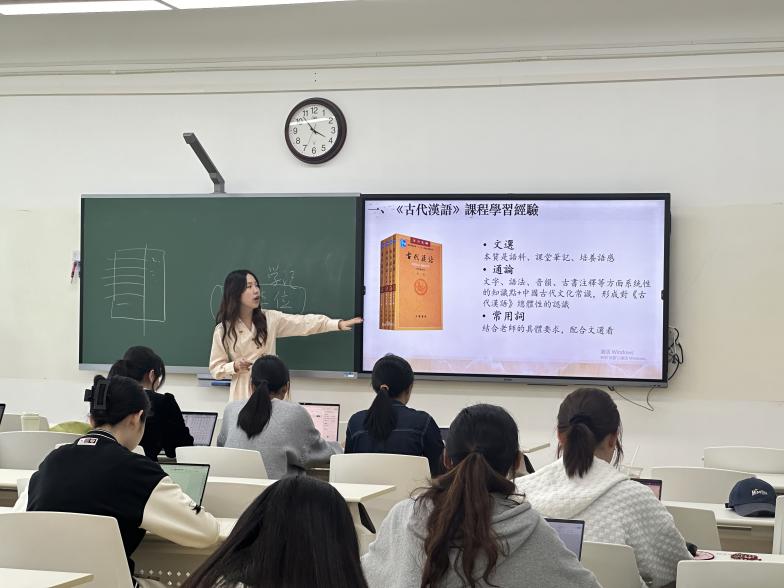 随后,刘楚戈分享了中国古典文献学的学习经验,从自身访书与古籍整理的实际经历出发,为本科同学们介绍了古典文献学的“冷板凳”功夫,从多方面为学弟学妹们推荐课程、提供建议。尚倩倩结合自己的科创项目“敦煌存调名佛教曲子词研究”,系统而细致地讲解了从组建队伍到成果撰写的思路与方法,为同学们打造内容丰富、格式精准、逻辑清晰的科创成果提供了要点。吴思燕谈及自己在汉语言文字学和论文写作上的经验,从《古代汉语》课程的学习方法出发,引申并推荐了汉语言文字学方向实用的网站与工具。她也以自己的学年论文《〈苍颉篇〉传世辑佚材料与简牍本对比研究》为例,分享了从选题到安排论文结构的方法技巧。唐艺琳结合自身的学习经历,从作者、作品、评价、线索四个角度梳理了《中国文学史》的备考方法,就中国古代文学方向推荐了阅读书目与网址工具,并提供了选择方向与选择导师的建议。