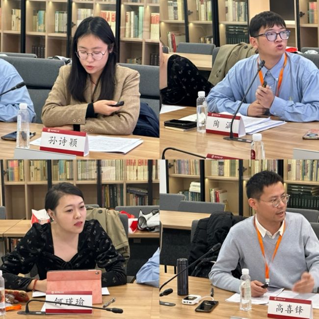 接下来,孙诗颖同学详细剖析了中国现代侦探小说中“鬼怪”元素与小说的教化之用。她提出古代公案小说和近代侦探小说虽在世界观上截然不同,但在文学教化功能上却保持了高度的一致性。陶涵同学以互文性为分析框架,对关汉卿的杂剧《窦娥冤》与果戈理的小说《外套》进行了解读,比较分析了二者在人物塑造、叙事结构及文化背景方面的共通性与差异性。马上同学详细梳理了“思想”概念在中国的演变与接受,他表示梁启超的个人际遇与此词传播的时间线高度吻合,而此词的演变与接受与当时报刊业兴盛等现实环境因素亦密切相关。何瑾瑜同学基于新疆塔城哈尔墩社区的田野调查,考察了民族互嵌式社区各族群众的生产生活方式,民族互嵌式社区的创建在极大程度上打破了新疆民族聚居区单一语言环境的困境,对构建和谐语言生活的意义重大。高喜锋同学的汇报指出“书贵自然”是中国书法观念史上古老而伟大的传统之一;“书像”有三大要素,即自然、自由及势,“自然”是“书像”得以生成的形上学根据,“自由”是“书像”得以生成的主体性诉求,“势”是基于前两者的“书像”孕酿而落实于笔墨线条间内在张力。