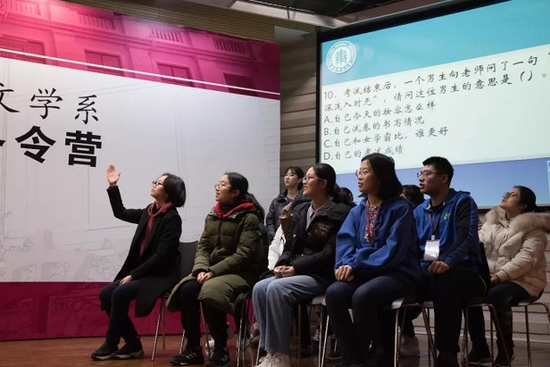 1月20日下午,营员沙龙在大学生活动中心C区报告厅拉开帷幕。营员沙龙分为知识竞答和才艺展示两个部分。在知识竞答环节中,营员以组别为单位,抢答25个问题,展现了平日的阅读积累和文学常识储备。